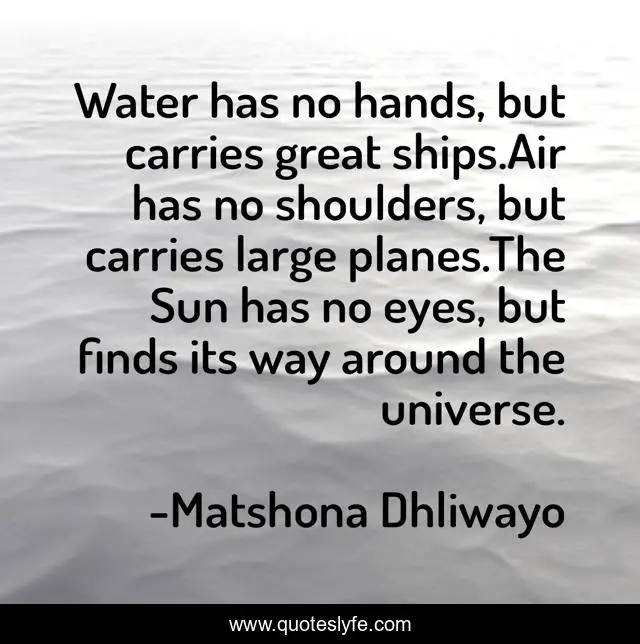 "Matshona Dhliwayo Quotes." Quoteslyfe.com, 2025. Fri. 05 Dec. 2025. <https://www.quoteslyfe.com/quote/Water-has-no-hands-but-carries-great-98545>.
