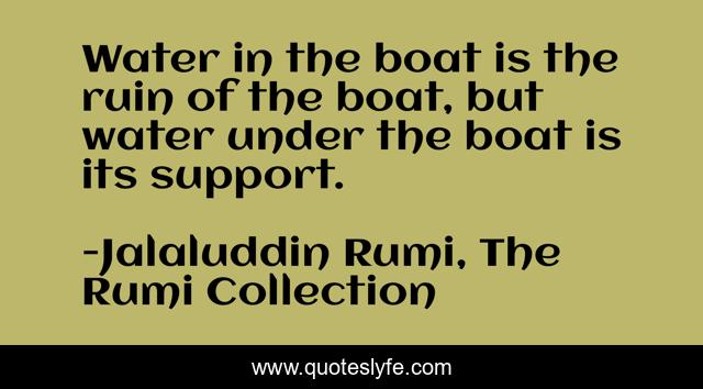 This page presents the quote "Water in the boat is the ruin of the boat, but water under the boat is its support.". Author of this quote is Jalaluddin Rumi, The Rumi Collection. This quote is about water, perspective, boat,.