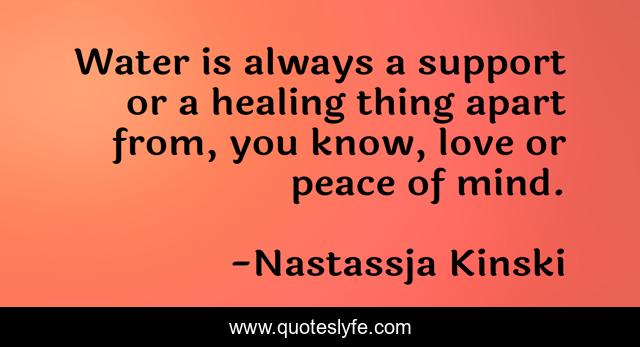 This page presents the quote "Water is always a support or a healing thing apart from, you know, love or peace of mind.". Author of this quote is Nastassja Kinski. This quote is about water, support, love, affection,.