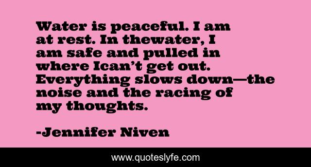 "Jennifer Niven Quotes." Quoteslyfe.com, 2025. Mon. 08 Dec. 2025. <https://www.quoteslyfe.com/quote/Water-is-peaceful-I-am-at-rest-118461>.