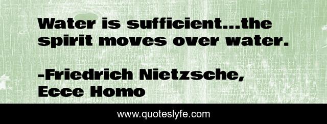 "Friedrich Nietzsche Quotes." Quoteslyfe.com, 2025. Mon. 08 Dec. 2025. <https://www.quoteslyfe.com/quote/Water-is-sufficient-the-spirit-moves-over-139382>.