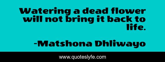 "Matshona Dhliwayo Quotes." Quoteslyfe.com, 2025. Mon. 08 Dec. 2025. <https://www.quoteslyfe.com/quote/Watering-a-dead-flower-will-not-bring-98204>.