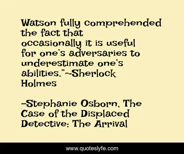 "Stephanie Osborn, The Case of the Displaced Detective: The Arrival Quotes." Quoteslyfe.com, 2025. Sun. 14 Dec. 2025. <https://www.quoteslyfe.com/quote/Watson-fully-comprehended-the-fact-that-occasionally-146441>.