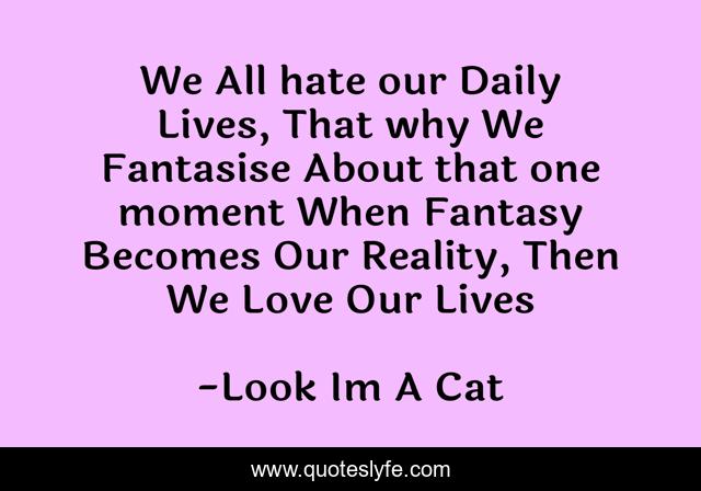 This page presents the quote "We All hate our Daily Lives, That why We Fantasise About that one moment When Fantasy Becomes Our Reality, Then We Love Our Lives". Author of this quote is Look Im A Cat. This quote is about fantasy, love, lives, affection, reality,.