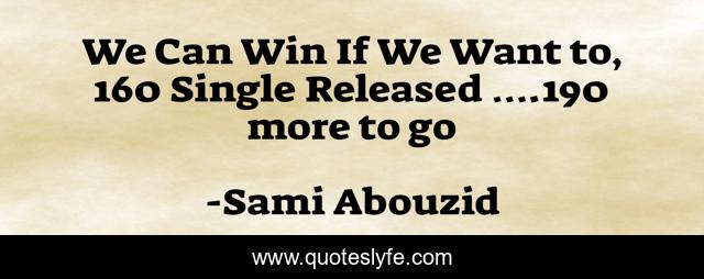 This page presents the quote "We Can Win If We Want to, 160 Single Released ….190 more to go". Author of this quote is Sami Abouzid. .