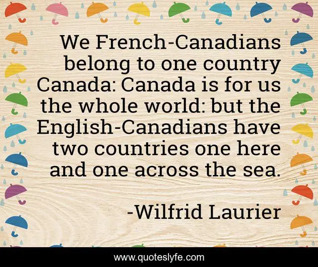 "Wilfrid Laurier Quotes." Quoteslyfe.com, 2025. Sat. 06 Dec. 2025. <https://www.quoteslyfe.com/quote/We-French-Canadians-belong-to-one-country-261096>.