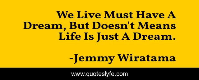 This page presents the quote "We Live Must Have A Dream, But Doesn't Means Life Is Just A Dream.". Author of this quote is Jemmy Wiratama. This quote is about life, dream, live,.