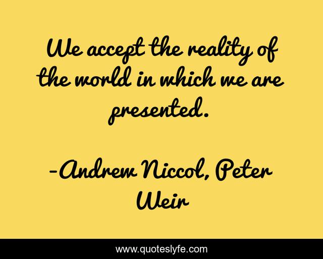 "Andrew Niccol, Peter Weir Quotes." Quoteslyfe.com, 2025. Fri. 05 Dec. 2025. <https://www.quoteslyfe.com/quote/We-accept-the-reality-of-the-world-93550>.