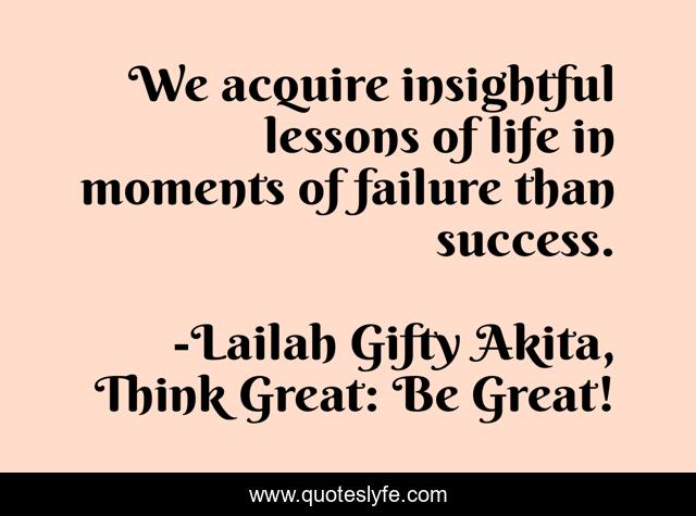 "Lailah Gifty Akita, Think Great: Be Great! Quotes." Quoteslyfe.com, 2025. Fri. 05 Dec. 2025. <https://www.quoteslyfe.com/quote/We-acquire-insightful-lessons-of-life-in-109545>.