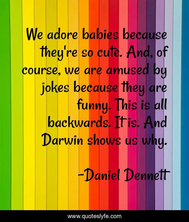 This page presents the quote "We adore babies because they're so cute. And, of course, we are amused by jokes because they are funny. This is all backwards. It is. And Darwin shows us why.". Author of this quote is Daniel Dennett. This quote is about cute, why, course,.