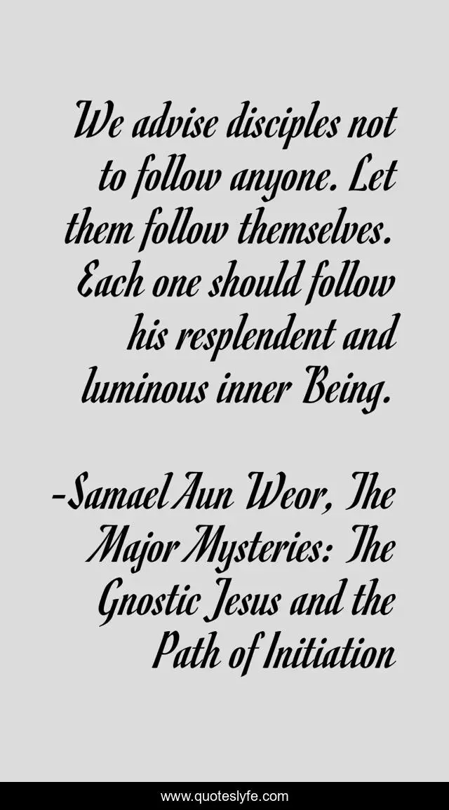"Samael Aun Weor, The Major Mysteries: The Gnostic Jesus and the Path of Initiation Quotes." Quoteslyfe.com, 2025. Sat. 06 Dec. 2025. <https://www.quoteslyfe.com/quote/We-advise-disciples-not-to-follow-anyone-205877>.