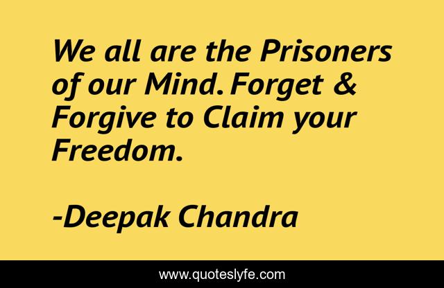 This page presents the quote "We all are the Prisoners of our Mind. Forget & Forgive to Claim your Freedom.". Author of this quote is Deepak Chandra. This quote is about prisoner, claim, forgive, forget, freedom,.