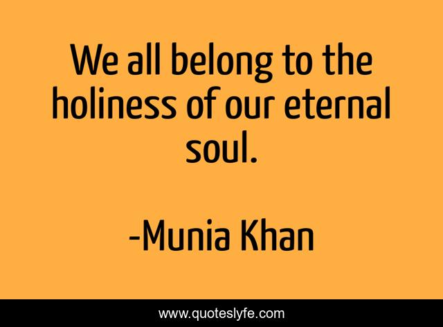 This page presents the quote "We all belong to the holiness of our eternal soul.". Author of this quote is Munia Khan. This quote is about life, belong, holy, holiness, philosophy, soul, souls, life-philosophy,.