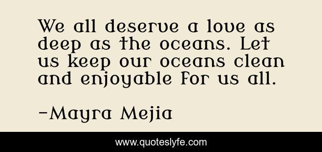 This page presents the quote "We all deserve a love as deep as the oceans. Let us keep our oceans clean and enjoyable for us all.". Author of this quote is Mayra Mejia. This quote is about climate-change, self-help,.