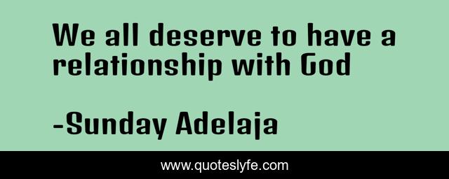 This page presents the quote "We all deserve to have a relationship with God". Author of this quote is Sunday Adelaja. This quote is about love, people, money, principles, worship, destiny, god, nature-of-god, image-of-god,.