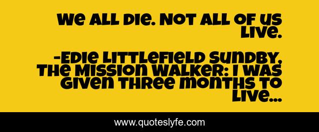 "Edie Littlefield Sundby, The Mission Walker: I was given three months to live... Quotes." Quoteslyfe.com, 2025. Sat. 06 Dec. 2025. <https://www.quoteslyfe.com/quote/We-all-die-Not-all-of-us-20275>.