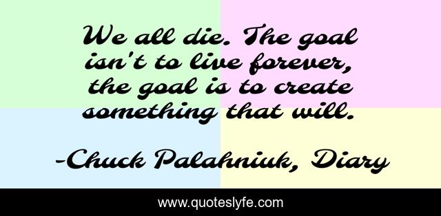 This page presents the quote "We all die. The goal isn't to live forever, the goal is to create something that will.". Author of this quote is Chuck Palahniuk, Diary. .