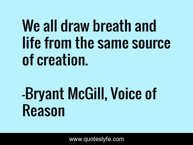 This page presents the quote "We all draw breath and life from the same source of creation.". Author of this quote is Bryant McGill, Voice of Reason. This quote is about religion, life-and-living, god-s-creation,.