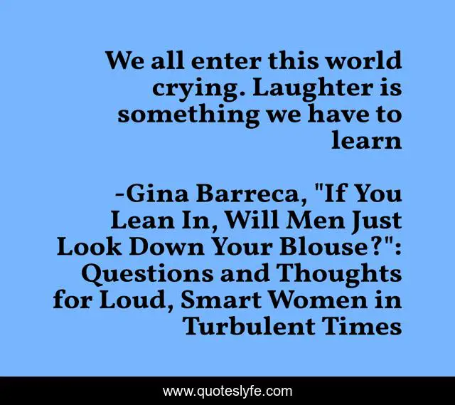 "Gina Barreca, "If You Lean In, Will Men Just Look Down Your Blouse?": Questions and Thoughts for Loud, Smart Women in Turbulent Times Quotes." Quoteslyfe.com, 2025. Sat. 06 Dec. 2025. <https://www.quoteslyfe.com/quote/We-all-enter-this-world-crying-Laughter-232946>.