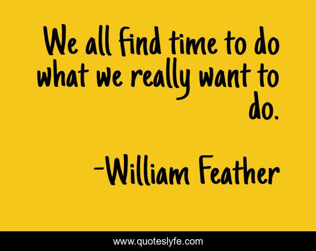 This page presents the quote "We all find time to do what we really want to do.". Author of this quote is William Feather. This quote is about day, one,.
