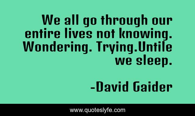 This page presents the quote "We all go through our entire lives not knowing. Wondering. Trying.Untile we sleep.". Author of this quote is David Gaider. This quote is about comics, fantasy, dragon-age,.