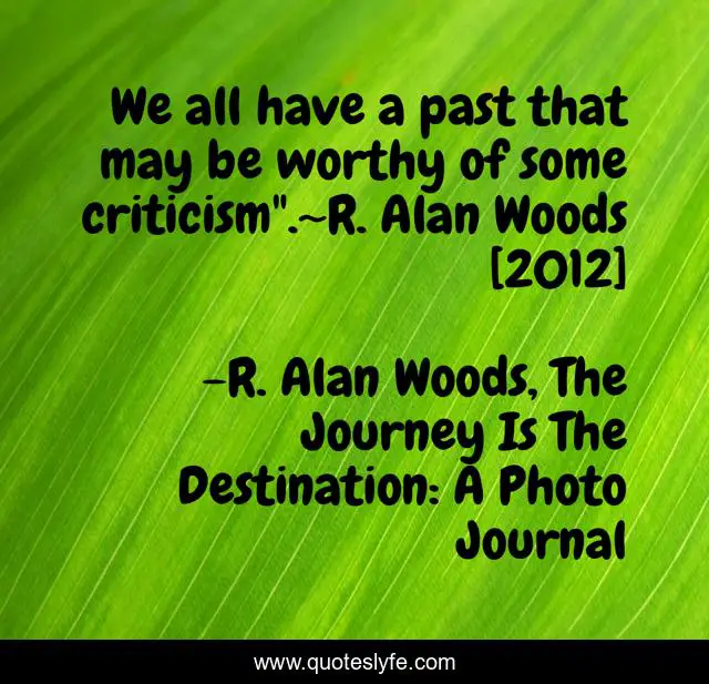 This page presents the quote "We all have a past that may be worthy of some criticism".~R. Alan Woods [2012]". Author of this quote is R. Alan Woods, The Journey Is The Destination: A Photo Journal. This quote is about past, r-alan-woods,.