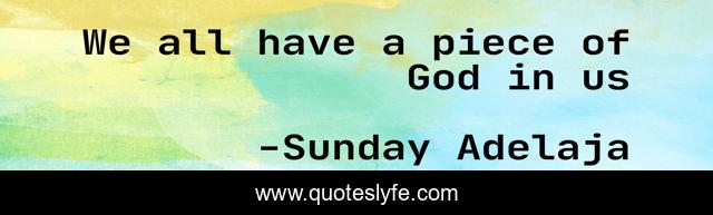 This page presents the quote "We all have a piece of God in us". Author of this quote is Sunday Adelaja. This quote is about kingdom, life, love, destiny, serving-god, people, money, god, work,.