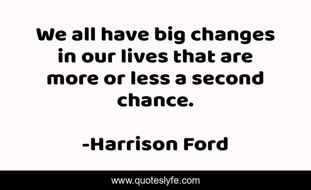This page presents the quote "We all have big changes in our lives that are more or less a second chance.". Author of this quote is Harrison Ford. This quote is about changes, change,.