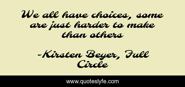 "Kirsten Beyer, Full Circle Quotes." Quoteslyfe.com, 2025. Fri. 05 Dec. 2025. <https://www.quoteslyfe.com/quote/We-all-have-choices-some-are-just-237728>.