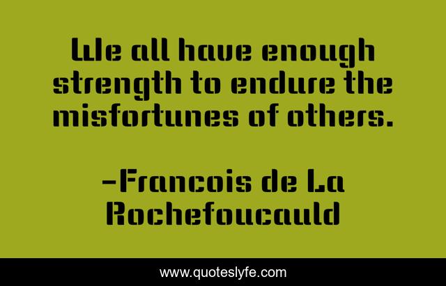 This page presents the quote "We all have enough strength to endure the misfortunes of others.". Author of this quote is Francois de La Rochefoucauld. This quote is about enough, endure, others,.