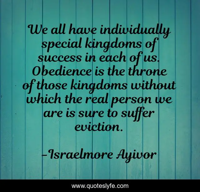 We all have individually special kingdoms of success in each of us. Obedience is the throne of those kingdoms without which the real person we are is sure to suffer eviction.