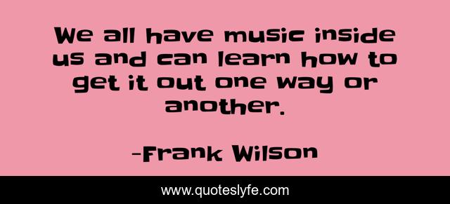 This page presents the quote "We all have music inside us and can learn how to get it out one way or another.". Author of this quote is Frank Wilson. .