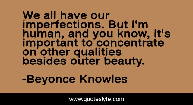 This page presents the quote "We all have our imperfections. But I'm human, and you know, it's important to concentrate on other qualities besides outer beauty.". Author of this quote is Beyonce Knowles. .
