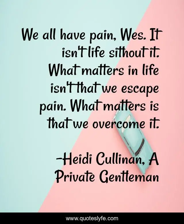 This page presents the quote "We all have pain, Wes. It isn't life sithout it. What matters in life isn't that we escape pain. What matters is that we overcome it.". Author of this quote is Heidi Cullinan, A Private Gentleman. This quote is about love, pain, inspirational, affection, enthusiasm,.