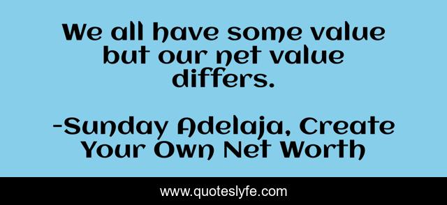 This page presents the quote "We all have some value but our net value differs.". Author of this quote is Sunday Adelaja, Create Your Own Net Worth. This quote is about life, self-image, nature, god, value, self-worth, net-value, worth, man,.