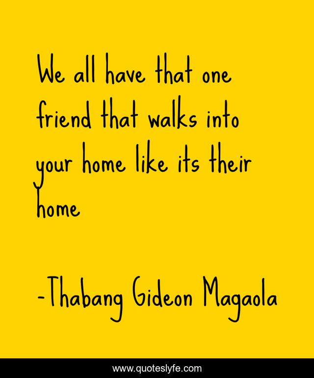 This page presents the quote "We all have that one friend that walks into your home like its their home". Author of this quote is Thabang Gideon Magaola. This quote is about funny-as-hell, friendship, life-lessons,.