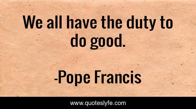This page presents the quote "We all have the duty to do good.". Author of this quote is Pope Francis. .