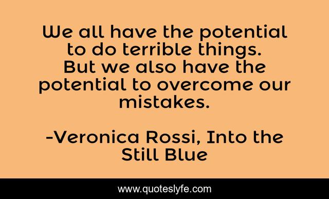 This page presents the quote "We all have the potential to do terrible things. But we also have the potential to overcome our mistakes.". Author of this quote is Veronica Rossi, Into the Still Blue. This quote is about mistakes-we-make, mistakes, potential,.