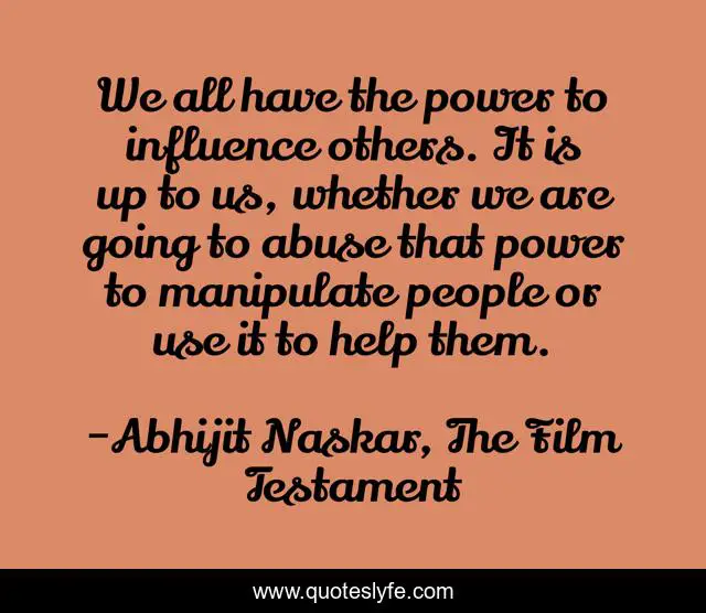 "Abhijit Naskar, The Film Testament Quotes." Quoteslyfe.com, 2025. Fri. 05 Dec. 2025. <https://www.quoteslyfe.com/quote/We-all-have-the-power-to-influence-36527>.