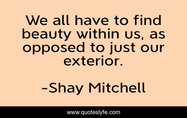 This page presents the quote "We all have to find beauty within us, as opposed to just our exterior.". Author of this quote is Shay Mitchell. This quote is about within, find, just,.