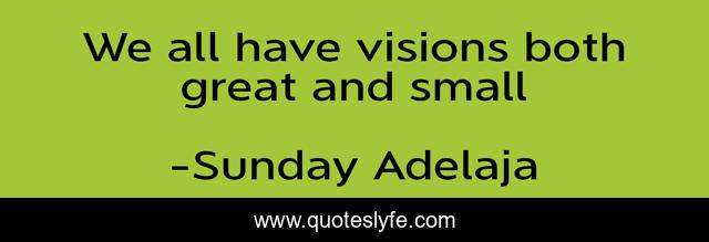 This page presents the quote "We all have visions both great and small". Author of this quote is Sunday Adelaja. This quote is about small, immence, great, visions,.