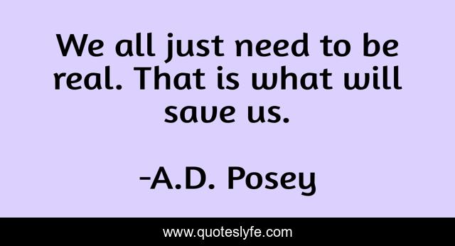 "A.D. Posey Quotes." Quoteslyfe.com, 2025. Fri. 05 Dec. 2025. <https://www.quoteslyfe.com/quote/We-all-just-need-to-be-real-150920>.