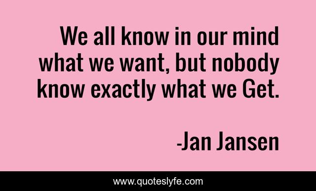 This page presents the quote "We all know in our mind what we want, but nobody know exactly what we Get.". Author of this quote is Jan Jansen. .