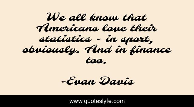 This page presents the quote "We all know that Americans love their statistics - in sport, obviously. And in finance too.". Author of this quote is Evan Davis. This quote is about statistics, love, affection,.