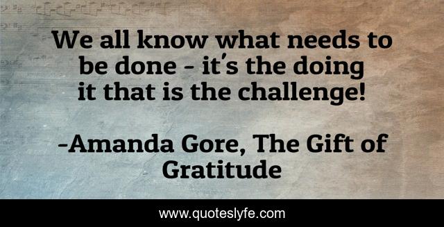 This page presents the quote "We all know what needs to be done - it's the doing it that is the challenge!". Author of this quote is Amanda Gore, The Gift of Gratitude. This quote is about challenge, change,.