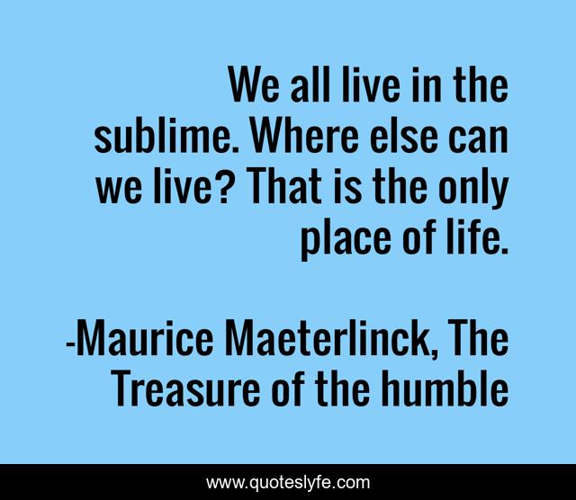 This page presents the quote "We all live in the sublime. Where else can we live? That is the only place of life.". Author of this quote is Maurice Maeterlinck, The Treasure of the humble. This quote is about living, life, sublime,.