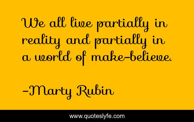 This page presents the quote "We all live partially in reality and partially in a world of make-believe.". Author of this quote is Marty Rubin. This quote is about imagination, make-believe, reality,.