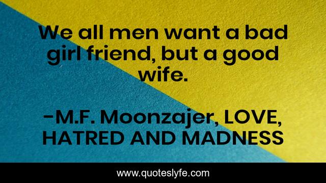 "M.F. Moonzajer, LOVE, HATRED AND MADNESS Quotes." Quoteslyfe.com, 2025. Tue. 09 Dec. 2025. <https://www.quoteslyfe.com/quote/We-all-men-want-a-bad-girl-177685>.