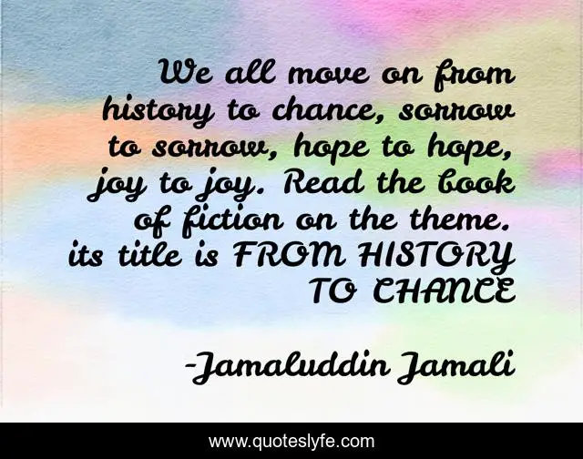 This page presents the quote "We all move on from history to chance, sorrow to sorrow, hope to hope, joy to joy. Read the book of fiction on the theme. its title is FROM HISTORY TO CHANCE". Author of this quote is Jamaluddin Jamali. .