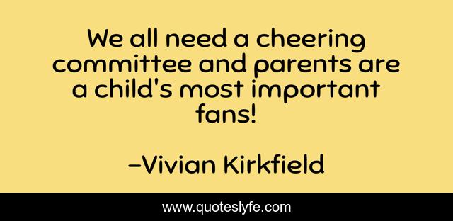 This page presents the quote "We all need a cheering committee and parents are a child's most important fans!". Author of this quote is Vivian Kirkfield. This quote is about parenting, self-esteem,.